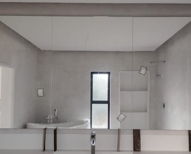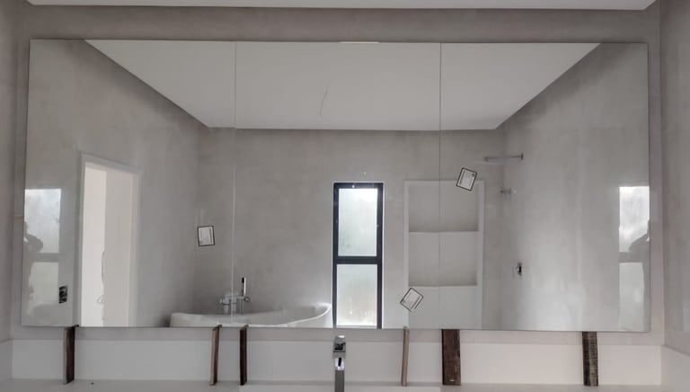 Espelhos cortados e instalados com acabamento perfeito para valorizar seu ambiente.